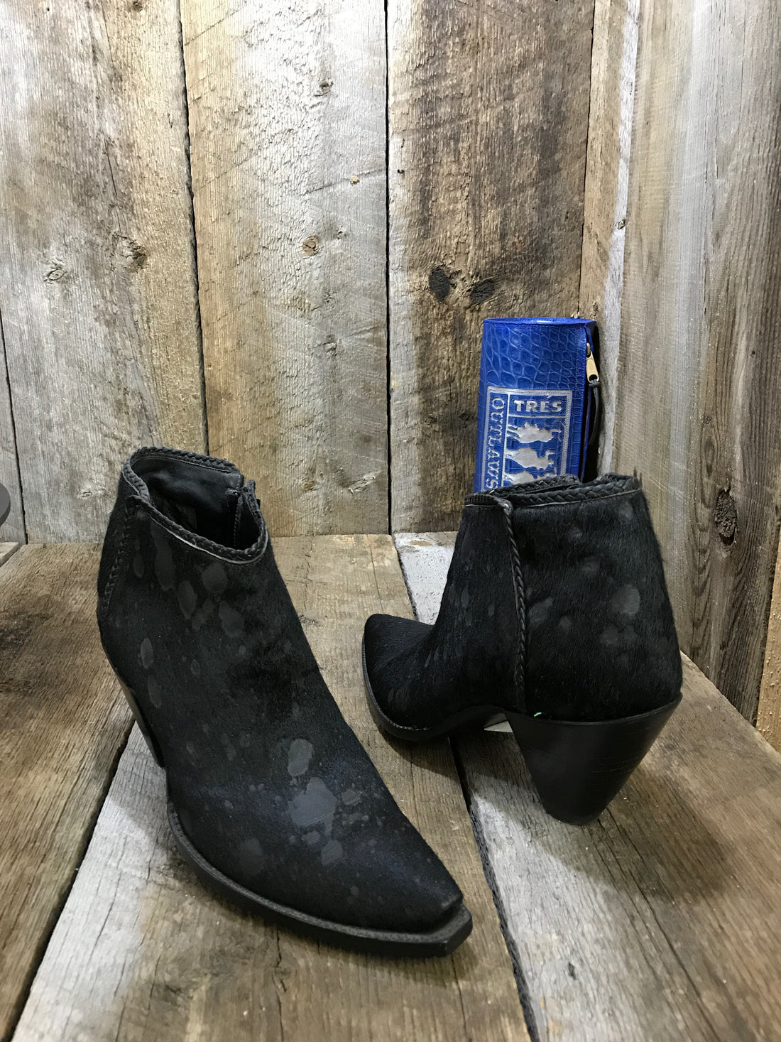 Acid Wash Black Hair On Calf Tres Outlaws Flamingo "2 Sweet Collection" Zip Boot 1743