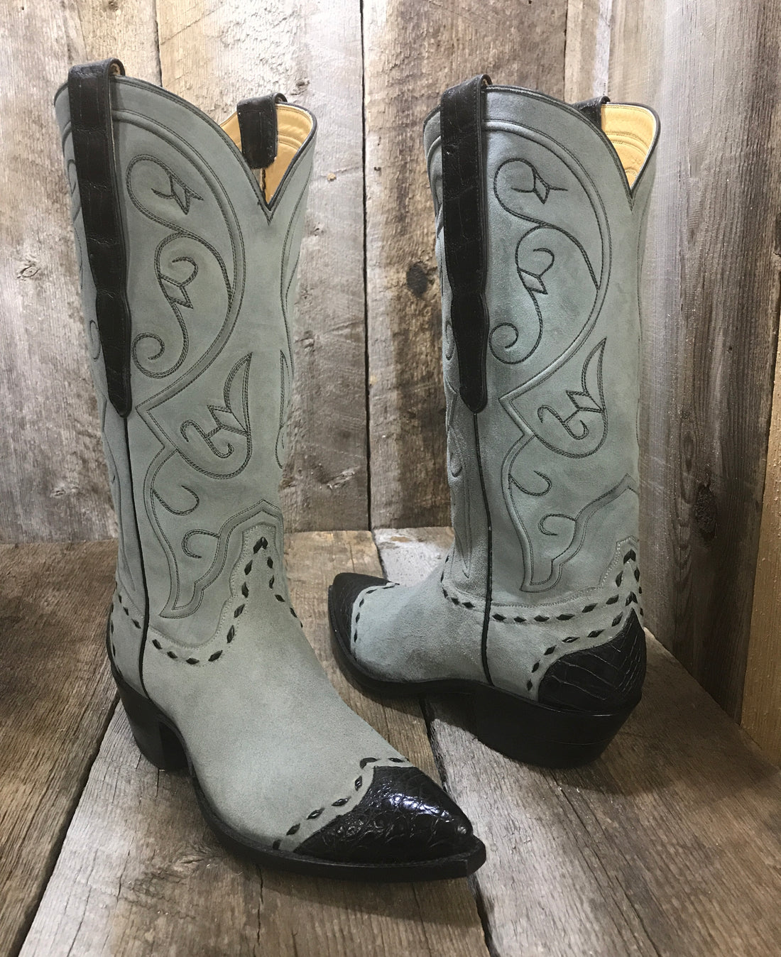 Blue Suede Kangaroo & Gator Tips Tres Outlaws Women's Classic Boot 1519@