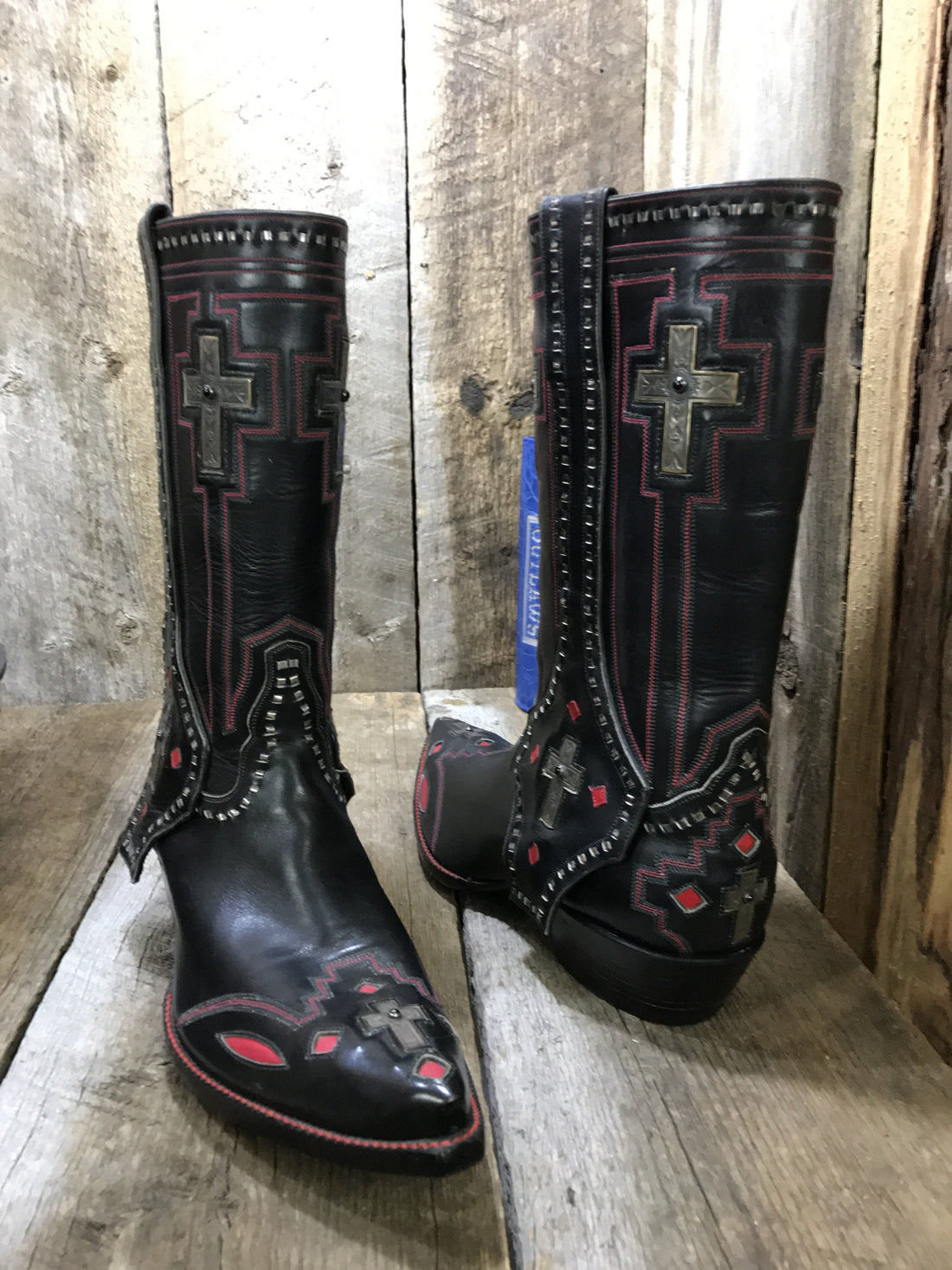 Award Winning "Al's Crosses" Kangaroo Pure Silver Laced Tres Outlaws Men's Classic Boots. Silversmith work by Al Sumner