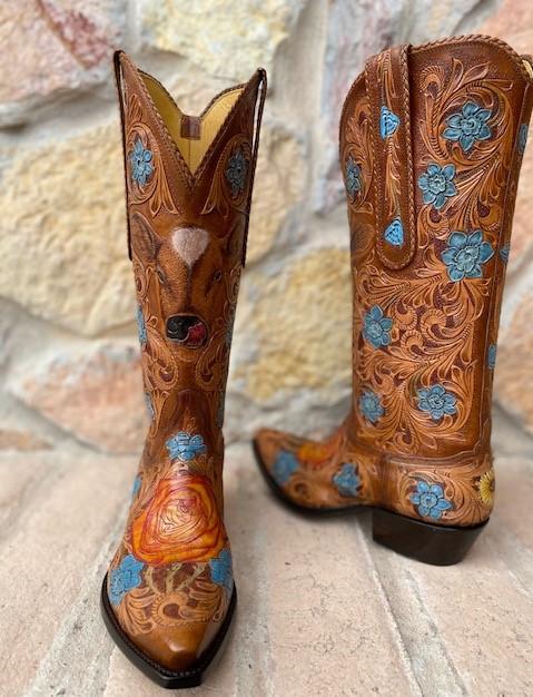 Hand Tooled with Cow and Roses "Anna Belle" Tres Outlaws Women's Classic Boot