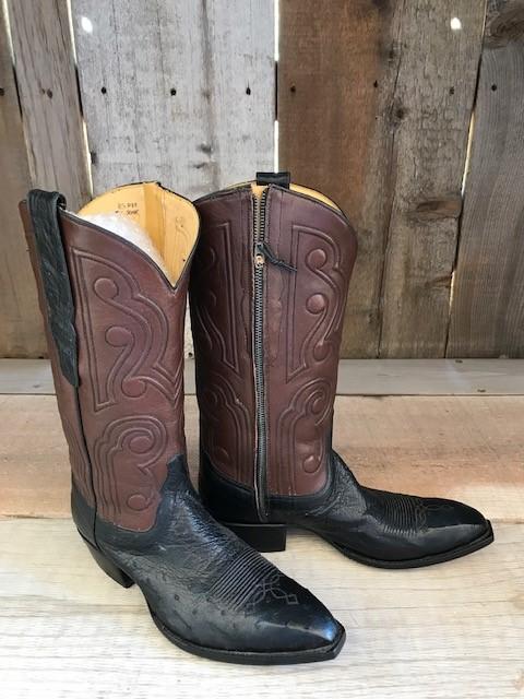 Black Ostrich & Brown Kangaroo Inside Zip Tres Outlaws Men's Classic 3485@