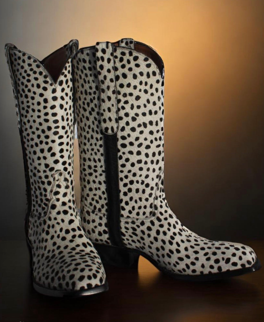 Snow Leopard Black & White Hair On Tres Outlaws Men's Classic Boots