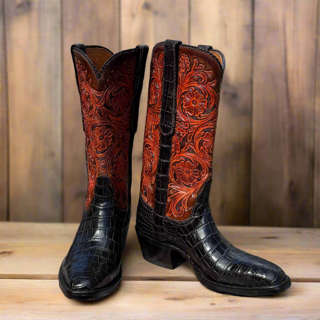 Black Alligator with Tooling Tres Outlaws Women's Classic Boot