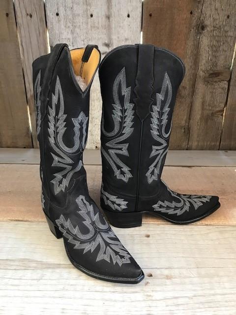 Blue NuBuck All Over Stitch Tres Outlaws Women's Classic Boot 1197@