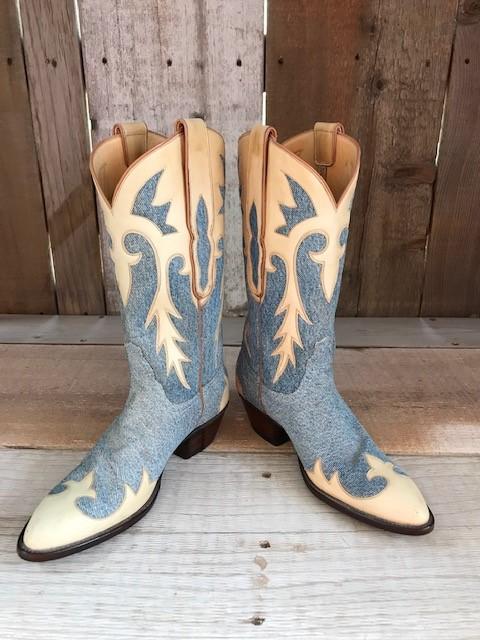 Blue Jean Suede Natural Overlay Tres Outlaws Women's Classic Boot 1289@