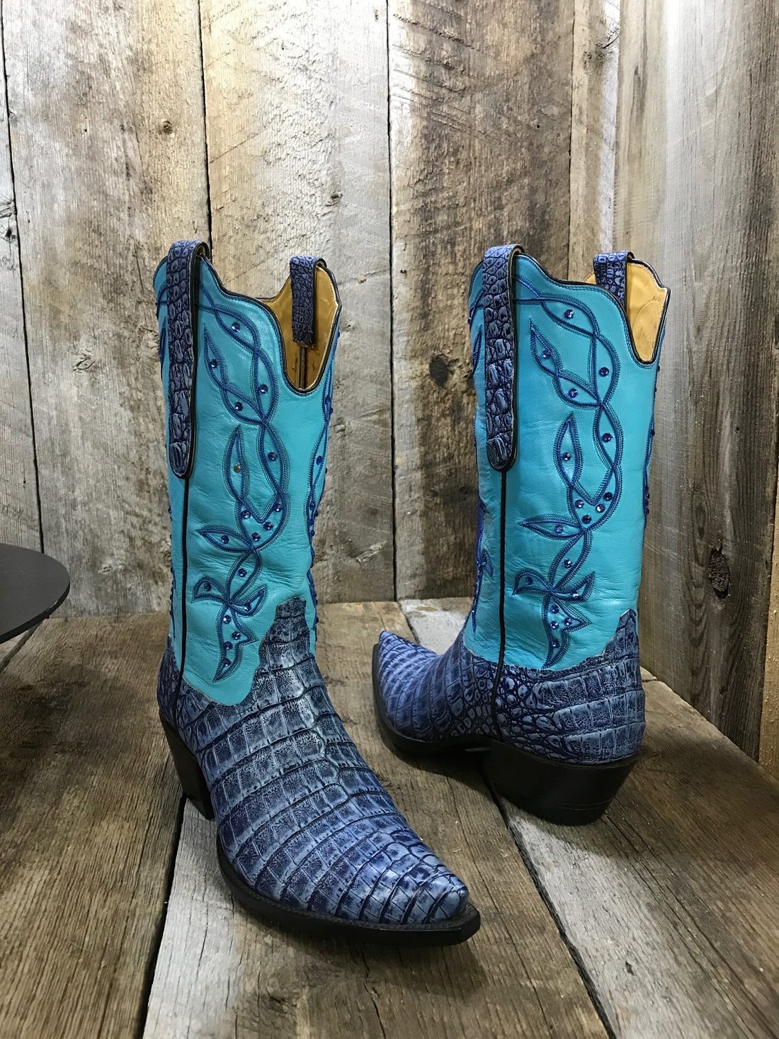 Croc Bling Blue Raised Stitching Swarovski Crystals Tres Outlaws Classic 1769 *