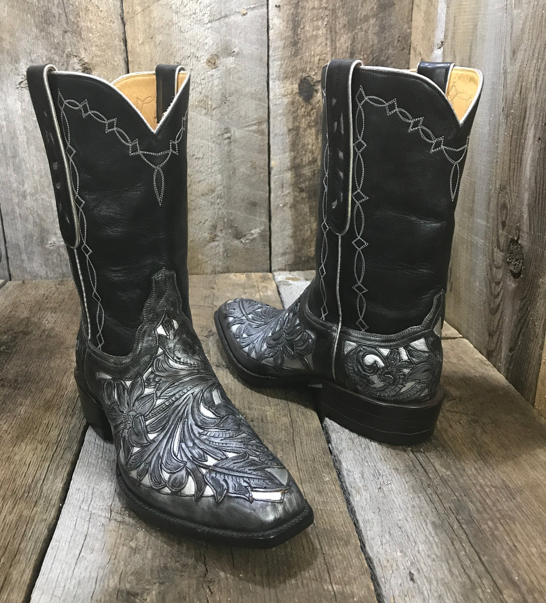 Carolina Black Filigree Hand Tooled Tres Outlaws Boot 1647 * @