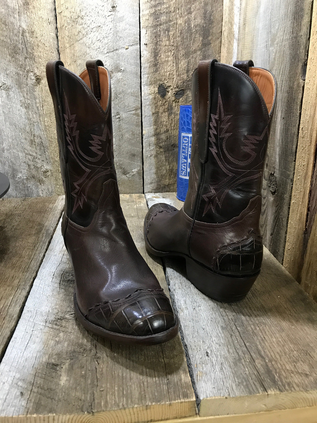 Chocolate Calf with Alligator Wing Tip Tres Outlaws Men's Classic Boot