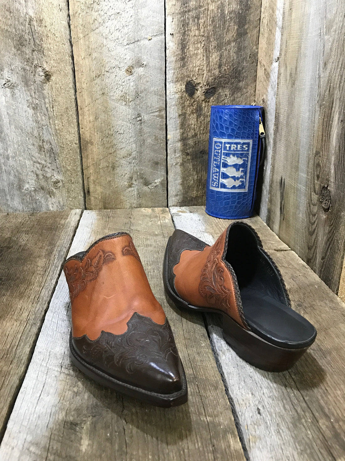 Cognac Kangaroo Tooled Wing Tip Tres Outlaws Mule 1945*