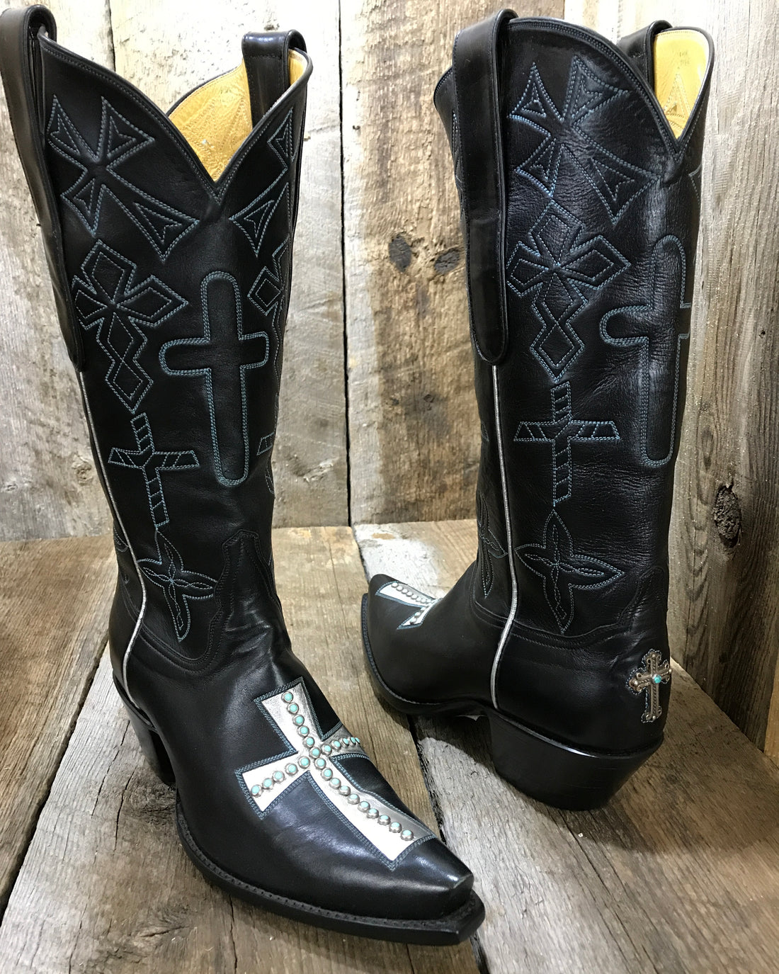 Falconhead Women' Classic Genuine Turquoise with Sterling Silver Cross Heel Counter