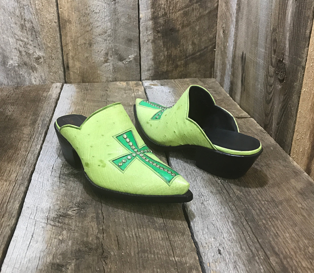 Cross Swarovski Crystal Green Cross Tres Outlaws Mule 1399*