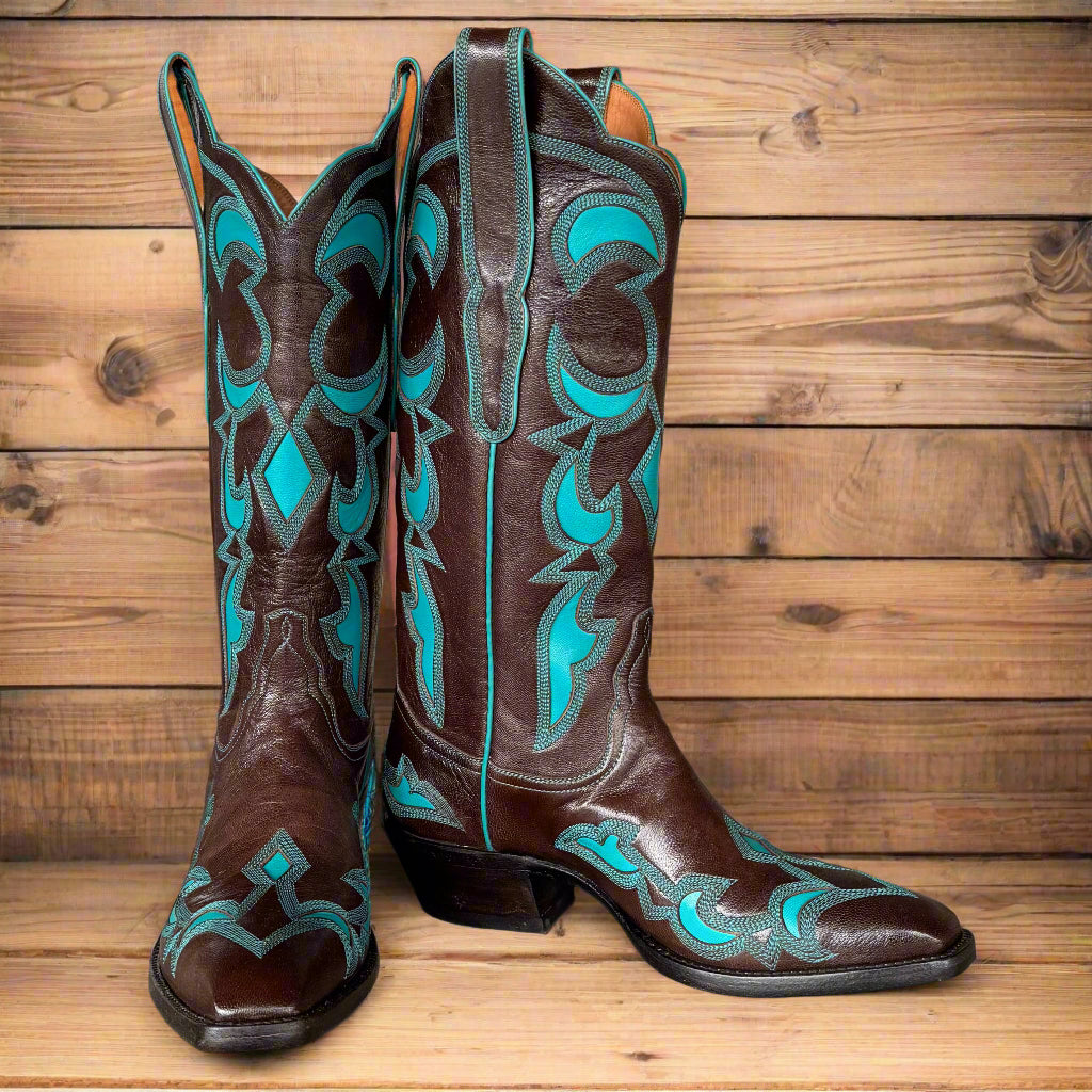 Brown Kangaroo with Inlayed Turquoise Old El Paso Design Tres Outlaws Women's Classic Boots