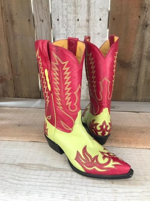 Lime & Red Kangaroo with Red Applique Tres Outlaws Men's Classic Boot 3792@