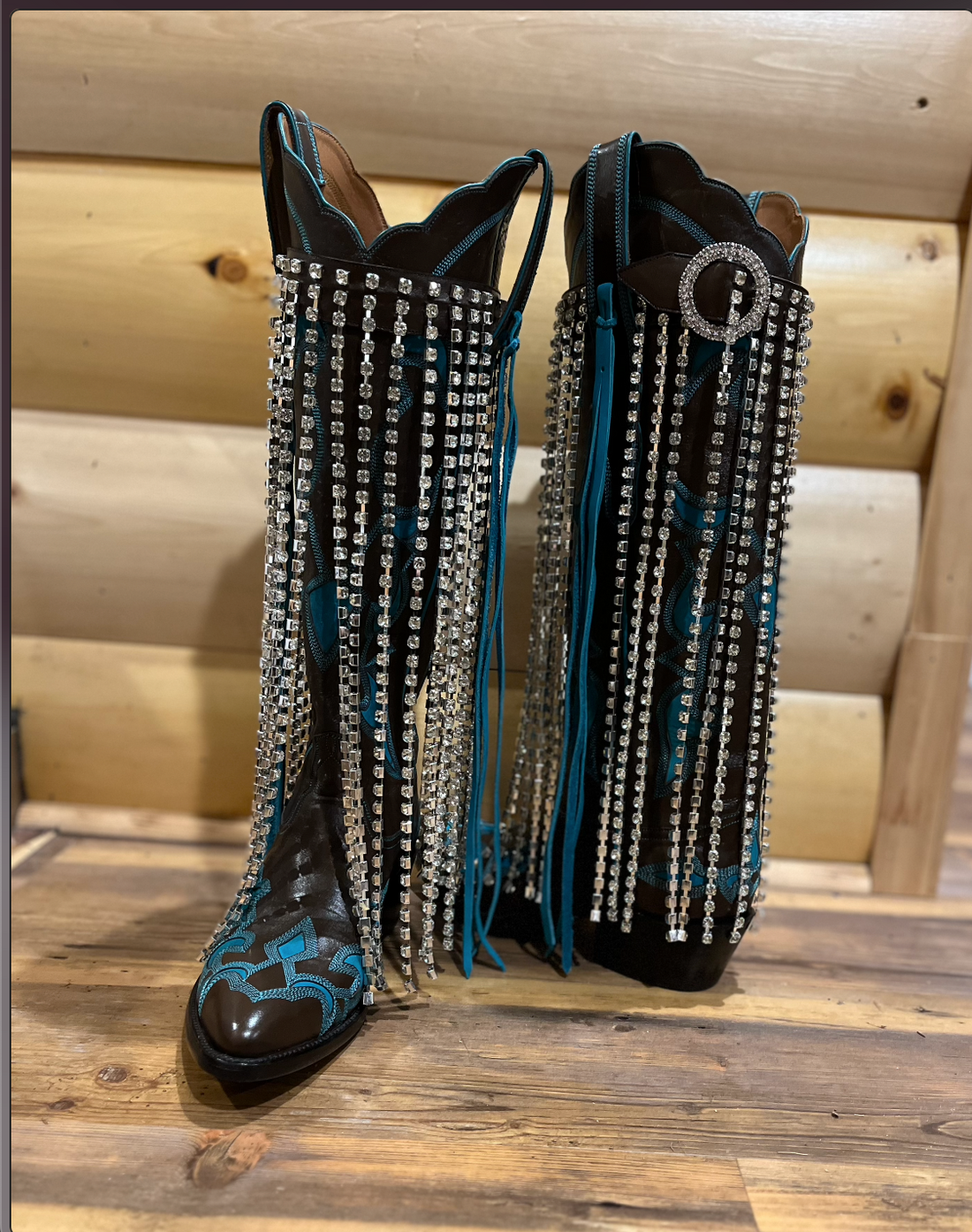Milk Chocolate and Blue Old El Paso Style Tall Boot, with a beautiful removal rhinestone belt!