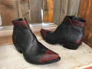 Old Scroll Tooled Brown Buffalo and Black Calf Tres Outlaws Men's Flamingo Side Zip Boots
