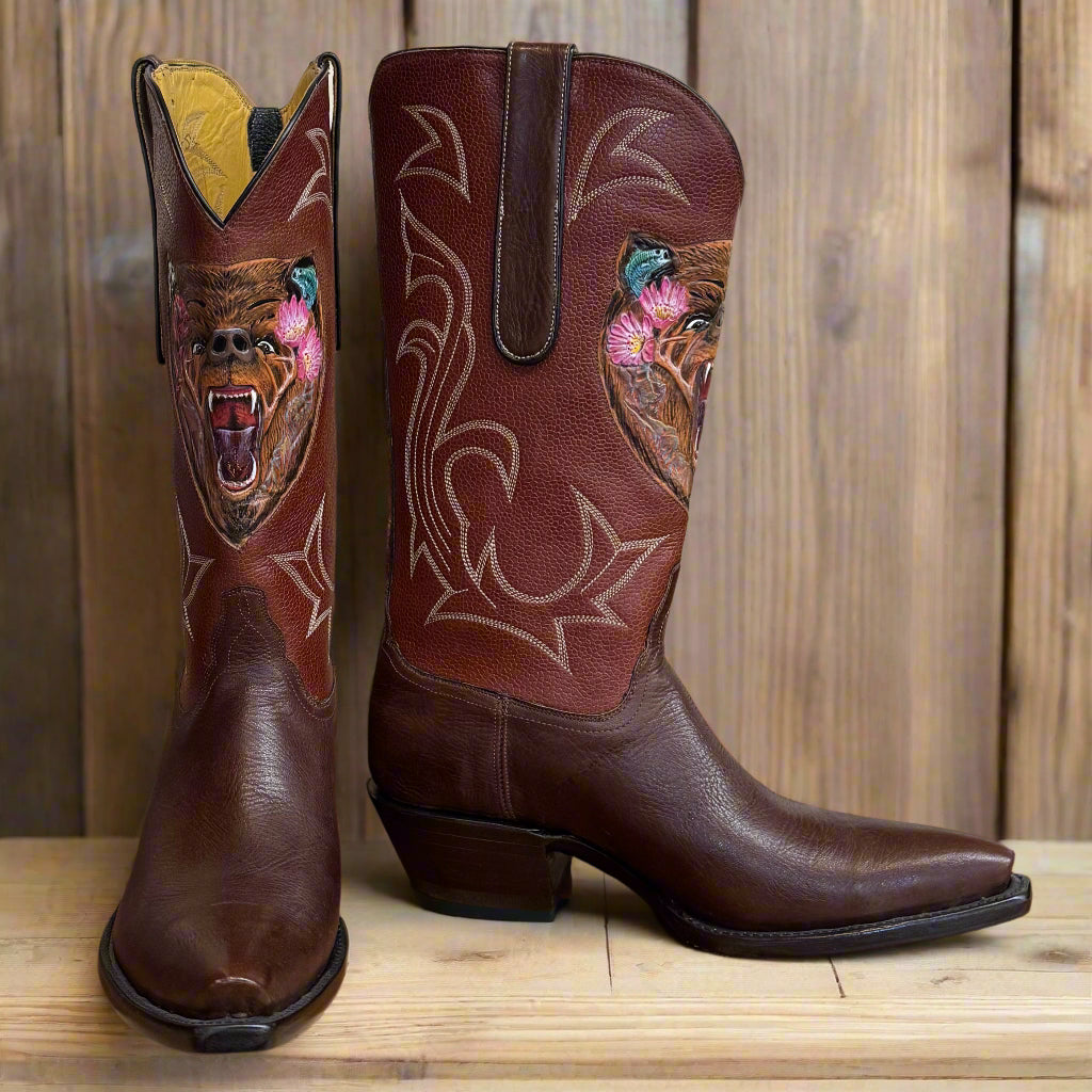 "The Bear" Chocolate Cognac Tooled Tres Outlaws Women's Classic Boot